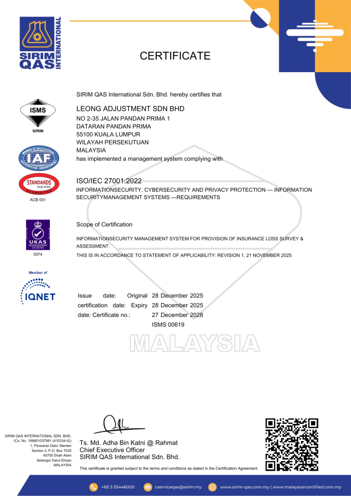 Leong Adjustment Sdn. Bhd. (LASB) is a licensed and trusted adjusting firm in Malaysia, committed to delivering professional and reliable services.